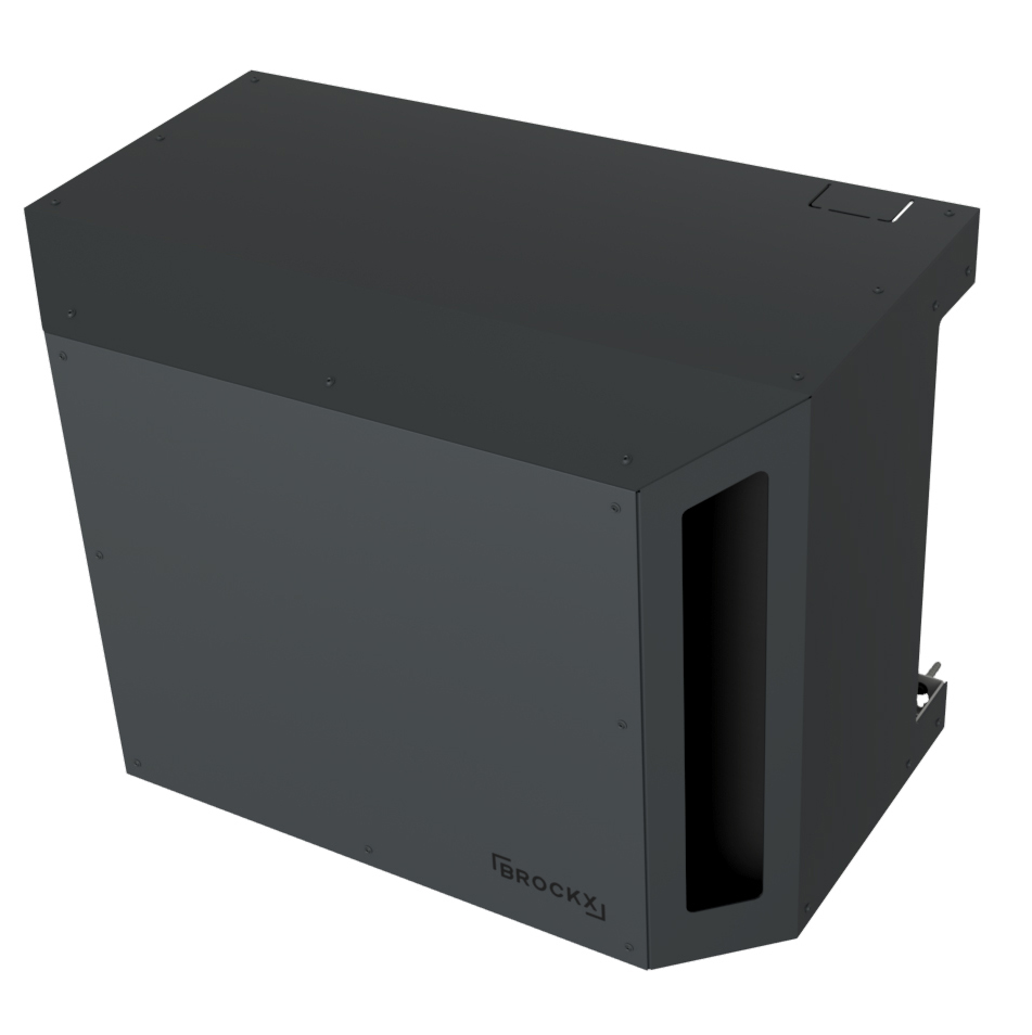 De omkasting is voorzien van een duurzame afwerking in de kleuren wit (RAL9003), zwart (RAL9005) of donkergrijs (RAL7016).
